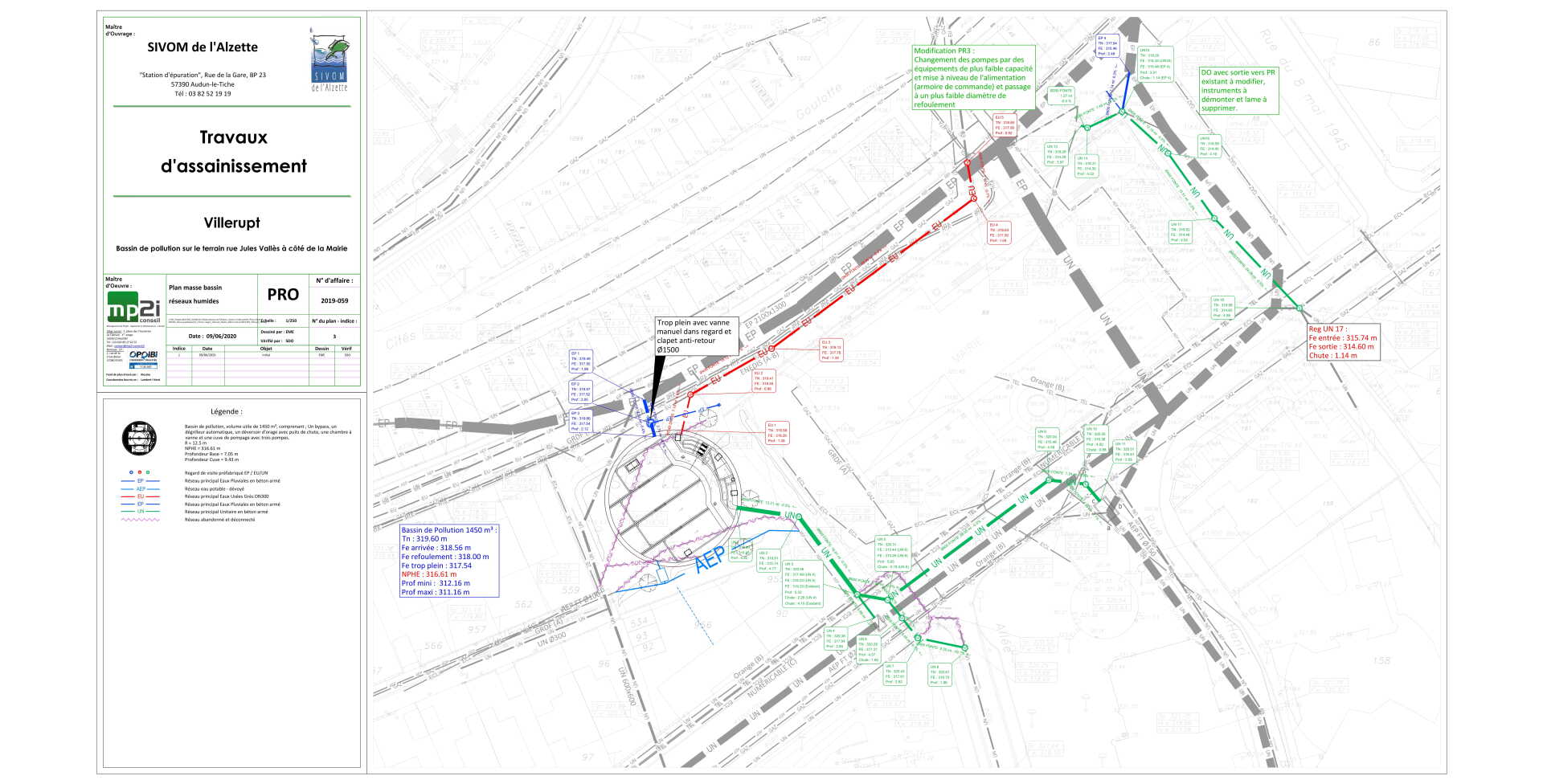 - Maîtrises d’œuvre complètes en 9 tranches opérationnelles (projets d'amélioration de la collecte, suppression de rejets directs et diminution du taux de dilution) :